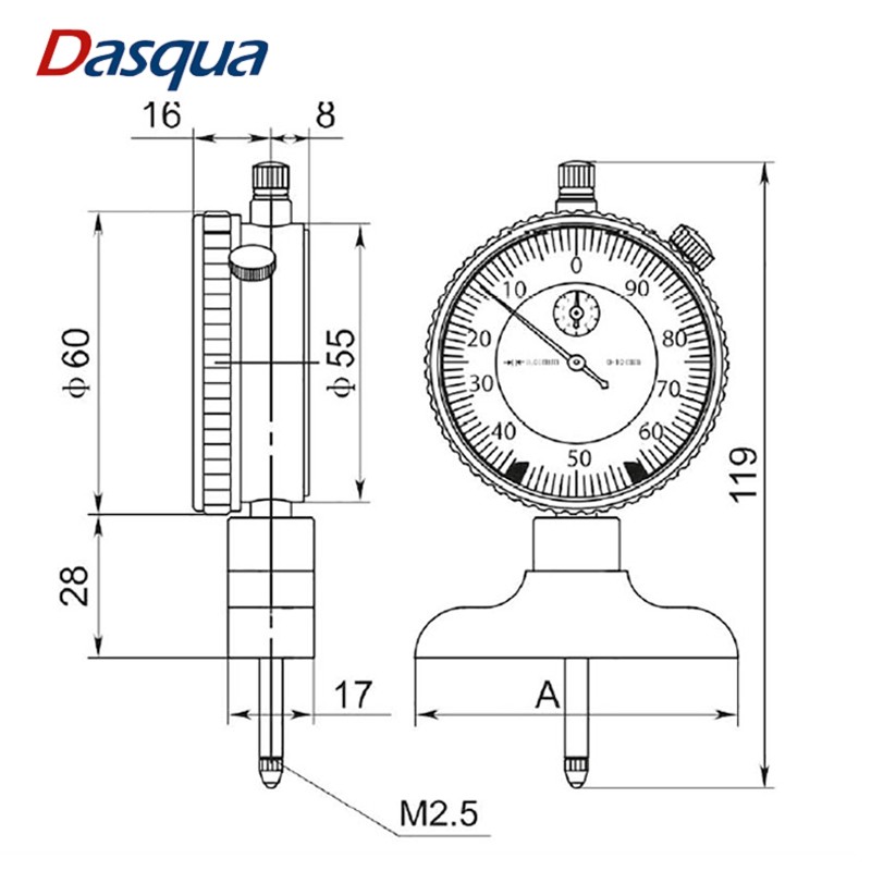 Dasqua外径百分表一套高精度测量仪0-10mm机械表指针式指示表
